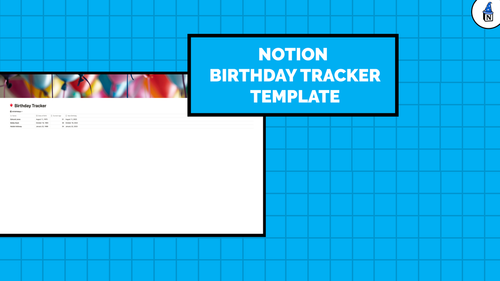 A fun addition to any Notion Workspace, just enter a date of birth and this Birthday Tracker Template will let you know how old the person is and when their next birthday is. By default, the soonest one is shown at the top of the list, though an alternative views is available to see all the birthdays happening in the next month.