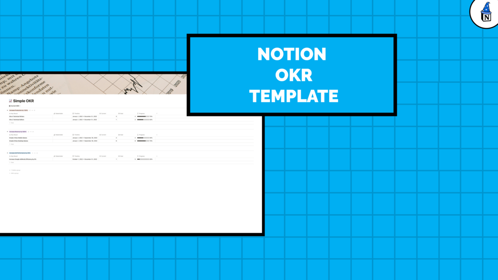 An acronym for Objectives and Key Results, an OKR is a fantastic way to break ambitious goals into digestible chunks, so you can visualize the path to achieving them and monitor your progress -- and our Simple OKR template will do the hard work for you. Just drop in your goals and it'll take care of the rest.
