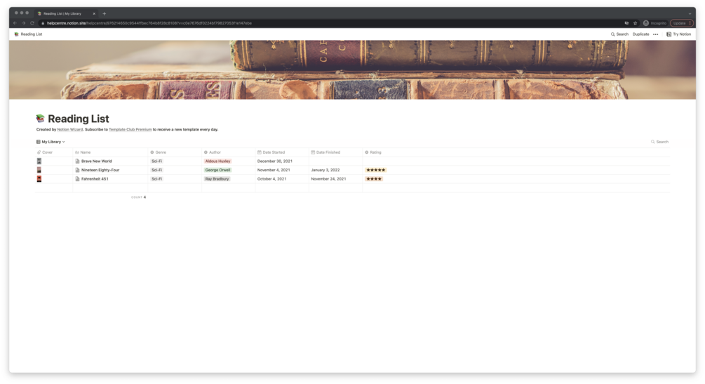 Notion Reading List Template